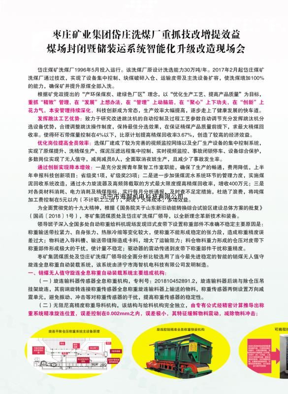 本產(chǎn)品一經(jīng)推出即獲得各大設(shè)計(jì)院及用戶的一致好評(píng),率先在棗礦集團(tuán)岱莊煤礦取得成功應(yīng)用,2018年9月受邀參加了《棗礦集團(tuán)煤場(chǎng)封閉暨儲(chǔ)裝運(yùn)系統(tǒng)智能化升級(jí)改造現(xiàn)場(chǎng)會(huì)》,智能裝車系統(tǒng)得到了充分肯定!我司憑借雄厚的加工制造實(shí)力及過(guò)硬的創(chuàng)新技術(shù)能力,勢(shì)必為運(yùn)輸稱重系統(tǒng)、快速計(jì)量裝車系統(tǒng)帶來(lái)又一次的技術(shù)創(chuàng)新變革。