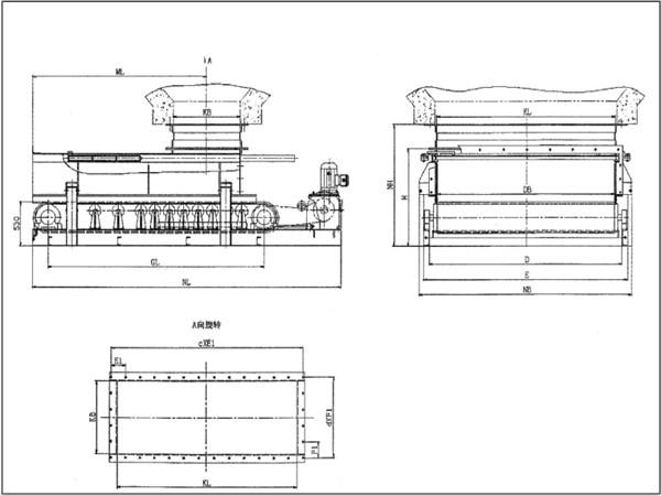 加寬加長帶式(甲帶)給料機(jī)的外形及連接尺寸: