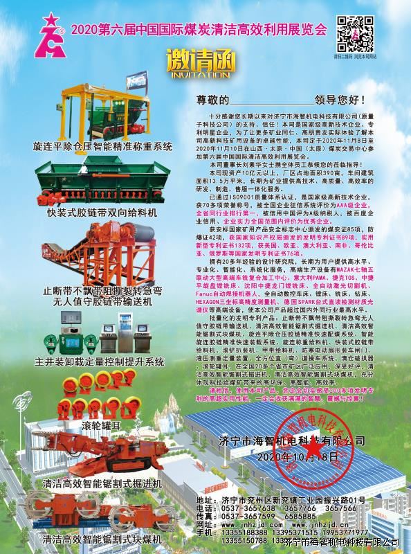 邀請(qǐng)函-第十九屆中國(guó)國(guó)際煤炭采礦技術(shù)交流及設(shè)備展覽會(huì)